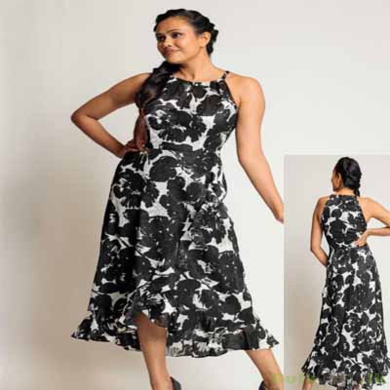 » Made from a gorgeous textured floral fabric the Willow Dress - designed with a faux-wrap skirt with romantic ruffles - will make a great addition to your eveningwear. Style this monochrome printed number with a pair of high heels and a clutch to complete the look.
